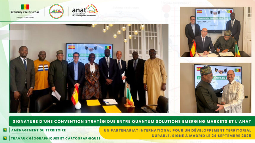 Le 24 septembre 2025, à Madrid, une convention cadre a été signée entre le Directeur général de l’Agence nationale de l’Aménagement du Territoire, M. Tidiane SIDIBE, et le Directeur général de Quantum Solutions Emerging Markets, entreprise technologique de référence, M. Gonzalo Pena.